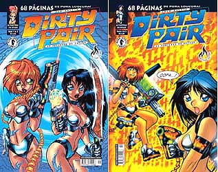 It is worth mentioning that the comix version of the Dirty Pair is probably at least as well known now as the Classic version. Outside of the U.S. and Canada, I have seen Web site or Usenet references to it from the United Kingdom, France, Italy, Spain and Portugal (where they are known as "La Pareja Sucia"), Germany, Denmark, Norway, Sweden, Finland, Latvia, Poland, Hungary ("Bájos Angyalok" / "Mocskos Pár"), the Czech Republic, Slovakia, Russia, Mexico ("Los Angeles Encantadores"), Argentina, Chile, and Brazil ("As Panteras do Espaço"), as of December 2006. Because of the licensing arrangements, the comix are not published in Japan, but they are known there; indeed, Warren's Biohazard Project sketchbook, which includes many DP illustrations not found elsewhere, was sold as a doujinshi there in 1996.